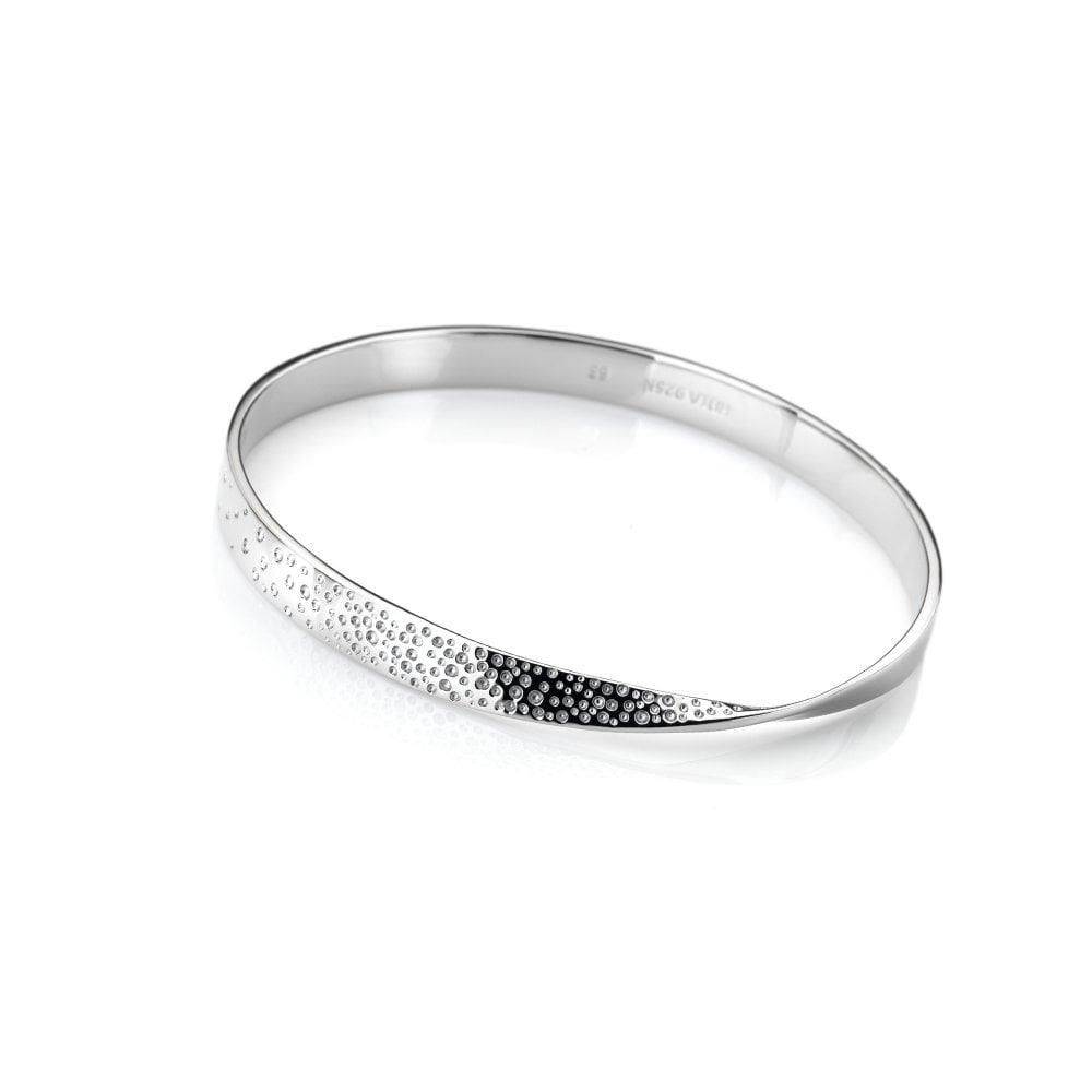 The Quest Twist Bangle is inspired by the undulations and textures we experience as we wander our way through the world. A long adventure full of twists and turns, rough and smooth. Crafted in 925 sterling silver and adorned with a real diamond, this bangle measures 7mm at its widest.