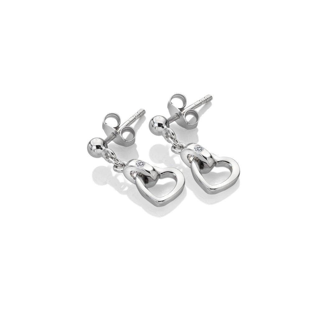 Hot Diamonds sterling silver trio heart drop earrings, each earring is set with a small diamond in signature Hot Diamonds style.