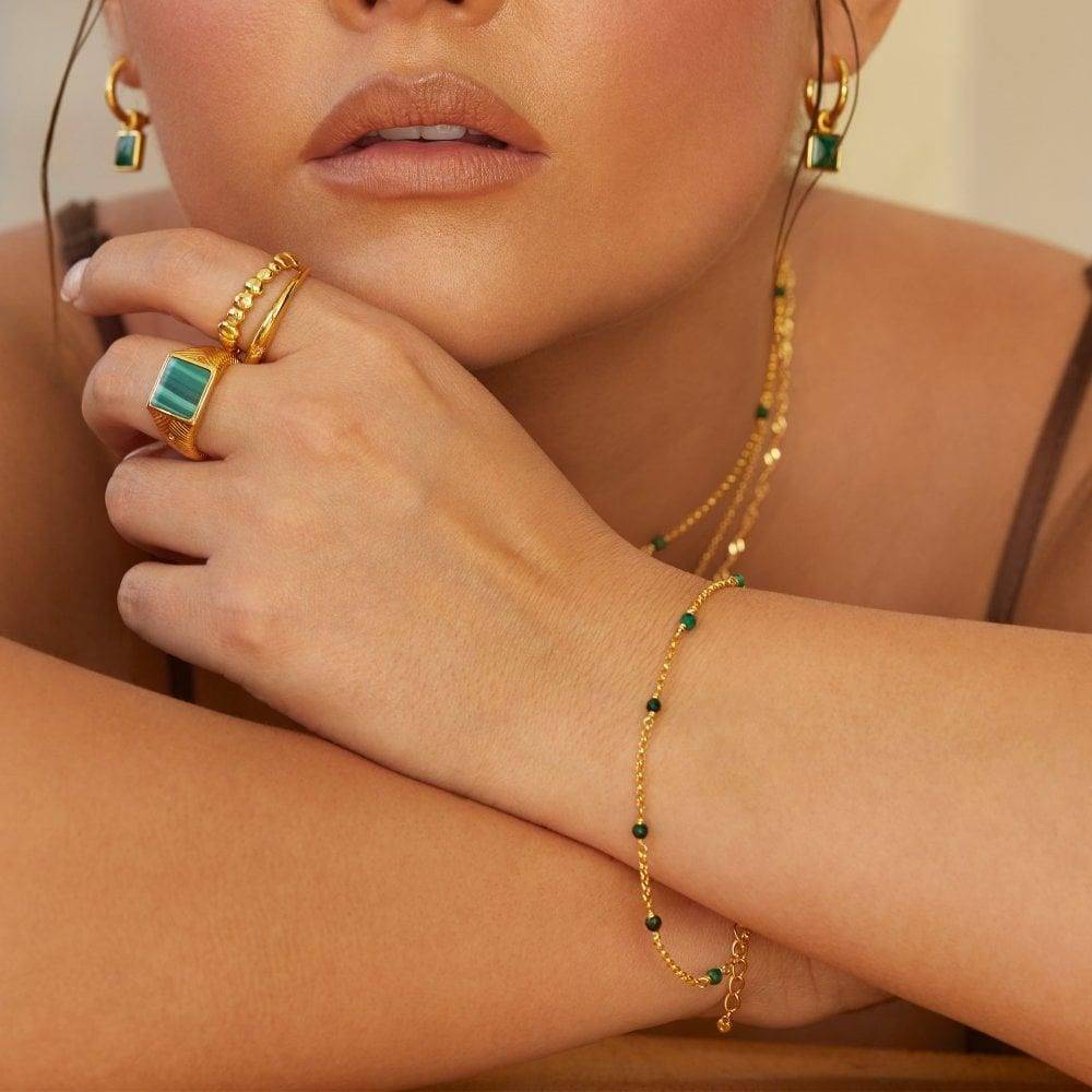 This jewel is crafted from genuine Malachite, 925 sterling silver, a real hand-set diamond and 18ct gold plate. You need it in your life! The length of this bracelet measures 24cm including an adjustable section that ensures it will fit almost anyone.