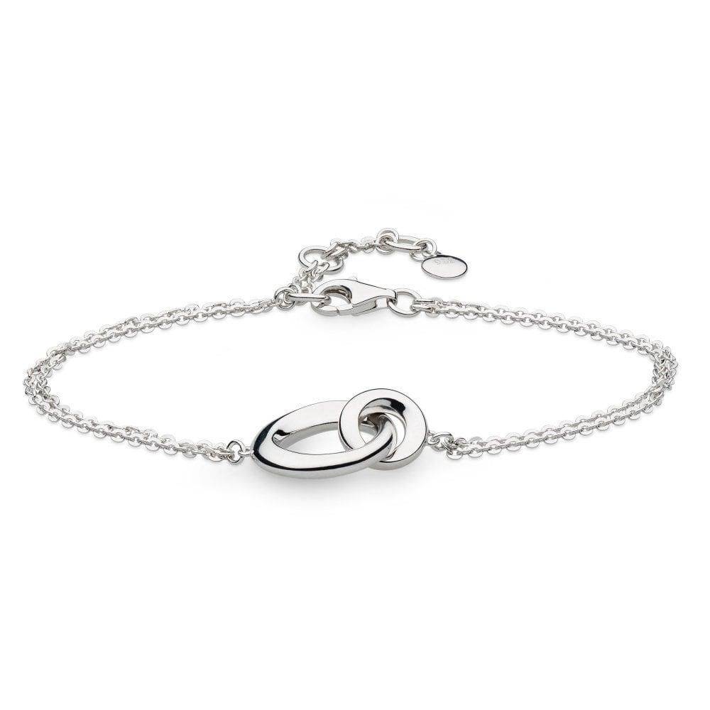 Kit Heath sterling silver double chain bracelet with a double circle feature in the centre.