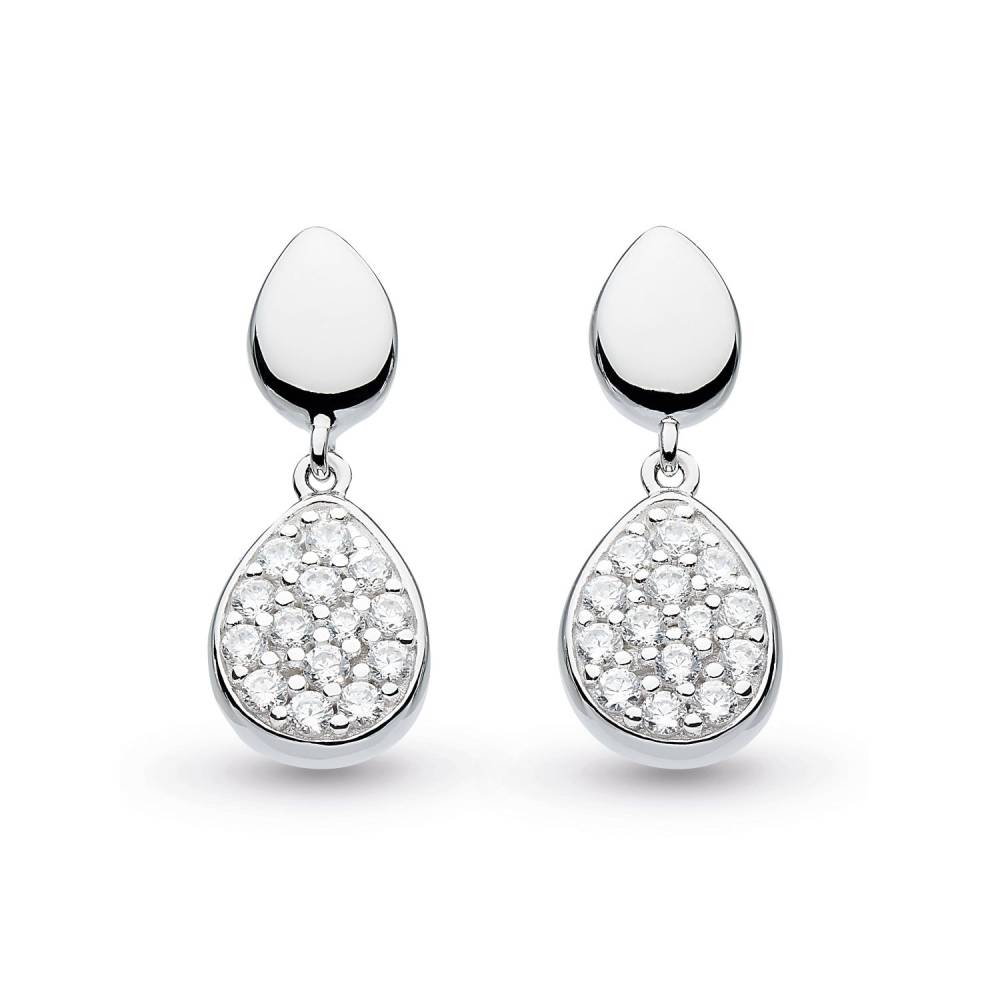 Kit Heath sterling silver double pebble drop stud earring set with glistening pave cubic zirconia.