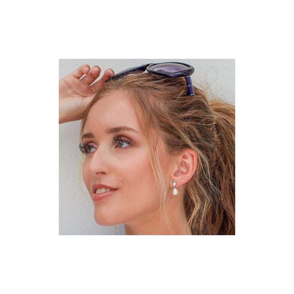 Our classic Coast Pebble in rhodium plated sterling silver pearl droplet — these drop earrings are a glamourous choice for everyday opulence. Width 8mm, Height 19mm.