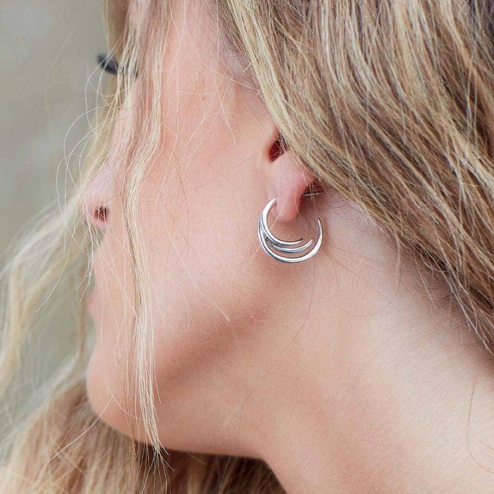 Strands of twirling silver coil into an abstract circle giving these stud earrings elegance with a twist. These sterling silver hoop earrings with rhodium plating are a stunning contemporary design.