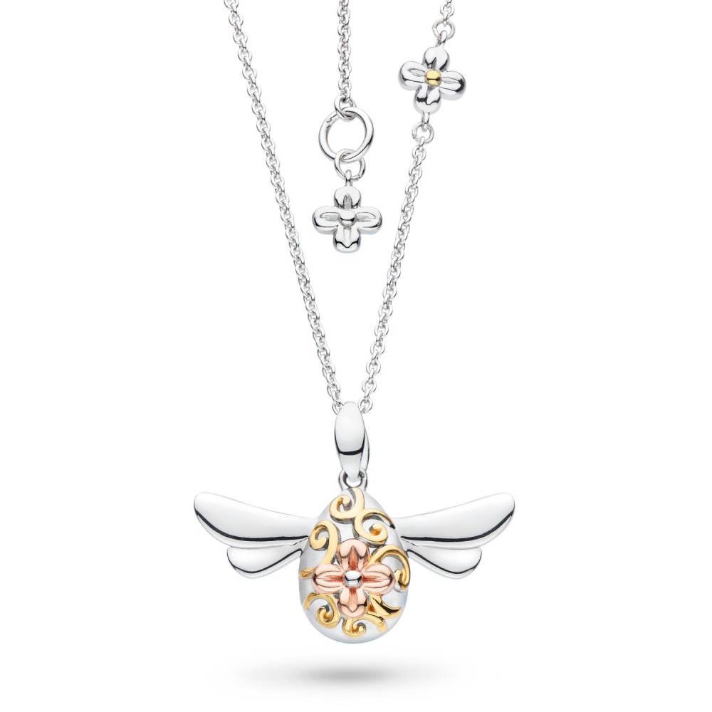 Kit Heath sterling silver quee bee pendant necklace with a pattern in 18ct yellow and rose gold plate. Chain length 22″