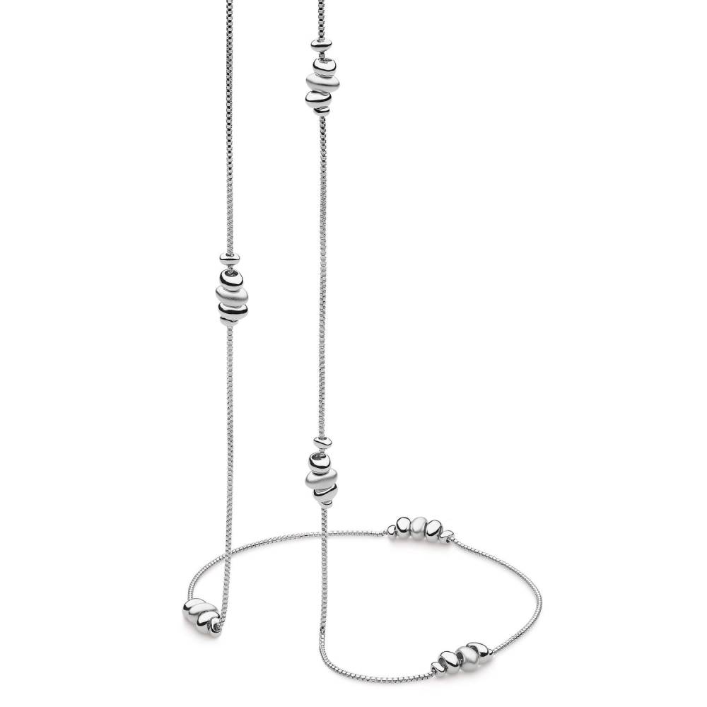 Kit Heath sterling silver coast tumble long station necklace in polished and matt finishes. Length 32″.