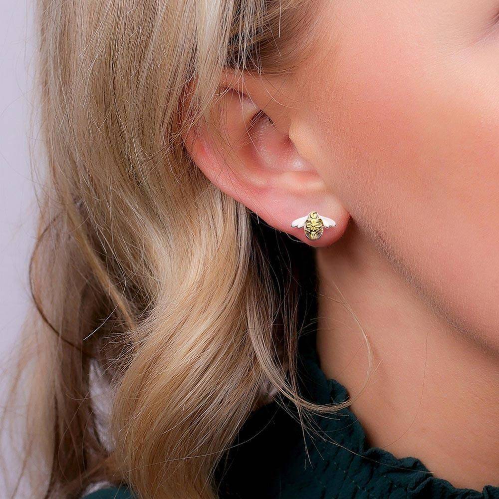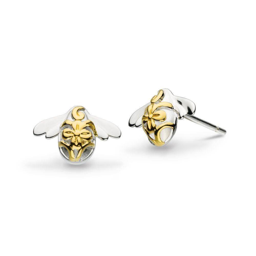 Kit Heath sterling silver and gold plated bumblebee stud earrings with a gold plated raised design.