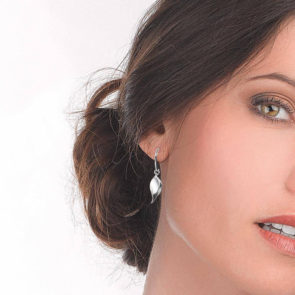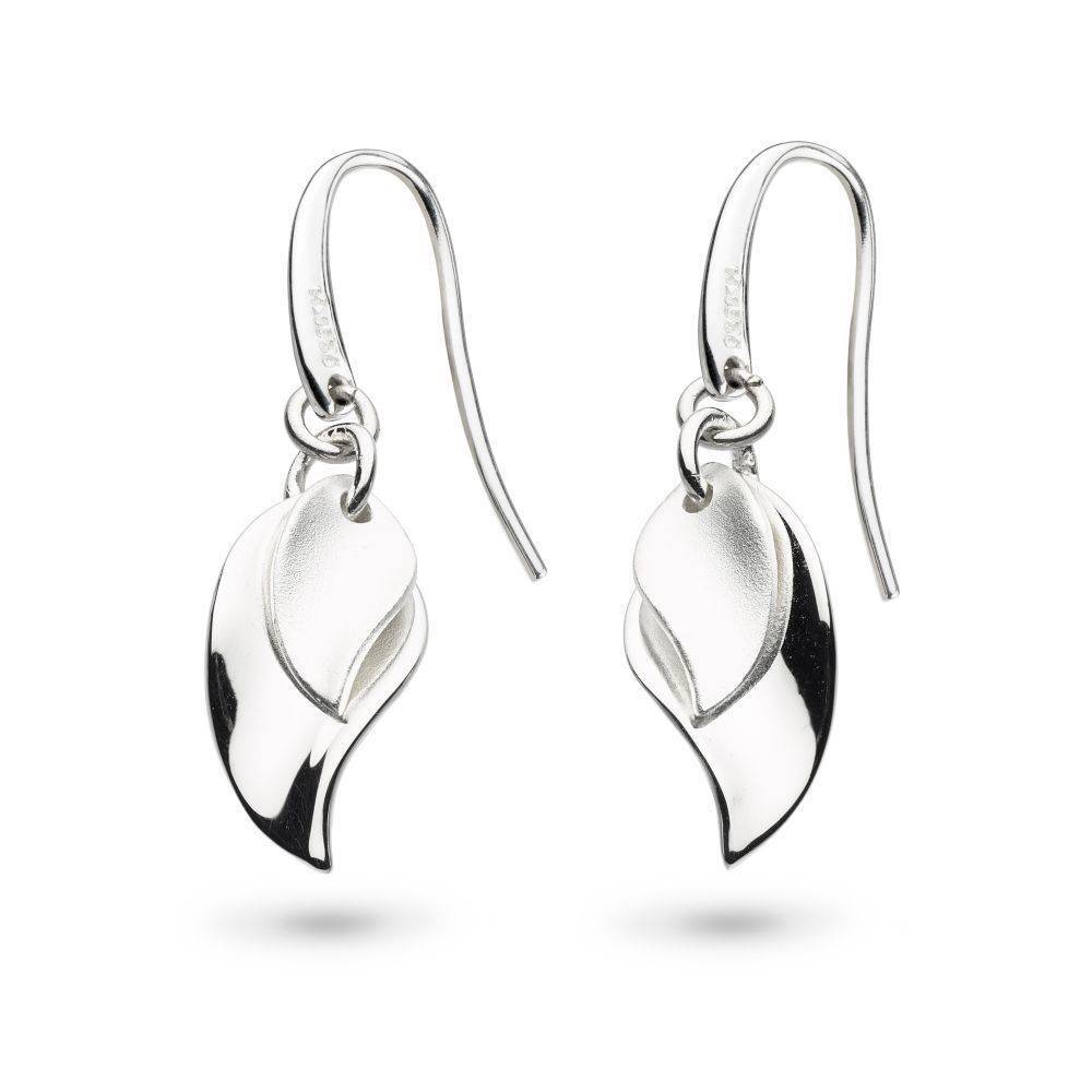 Kit Heath sterling silver double wavy leaf design hook through drop earrings. These earrings are in a mixture of a polished and satin finish.