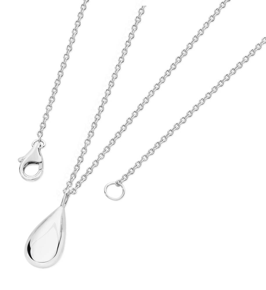 Sterling silver teardrop pendant on a 18″ trace chain. This pendant has a rhodium overlay to help prevent tarnishing and increase the shine and durability. Pendnat length 1.5cm.