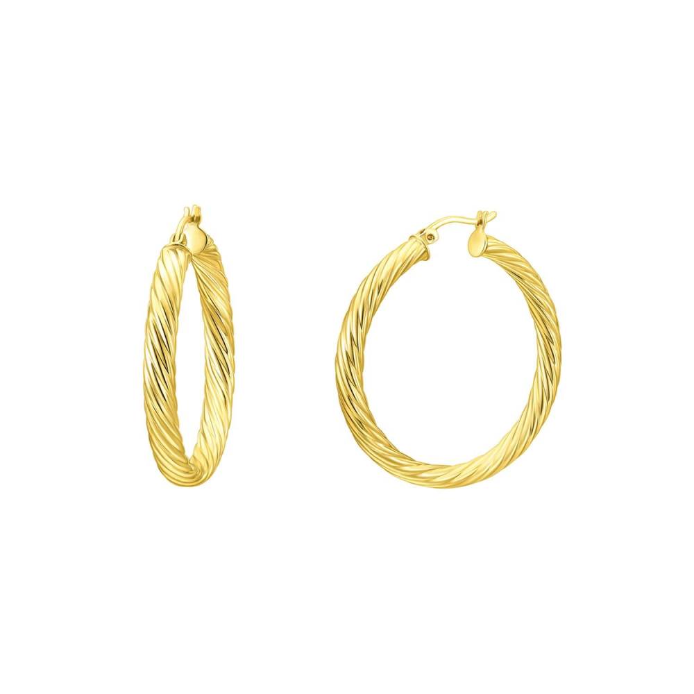 Gold plated on sterling silver 20mm rope patterned hoop earrings.