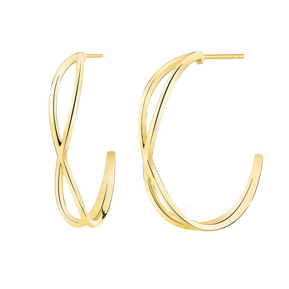 Gold plated on sterling silver 3/4 crossover ‘kiss’ design hoop earrings. The perfect statement hoop. Size 35mm