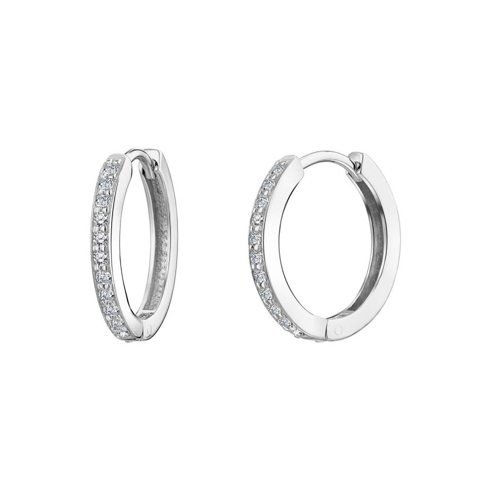 Sterling silver huggie style earrings set with sparkling cubic zirconia. Size 17mm.