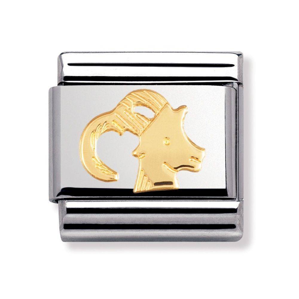 Nomination stainless steel charm with 18ct gold Capricorn zodiac sign.