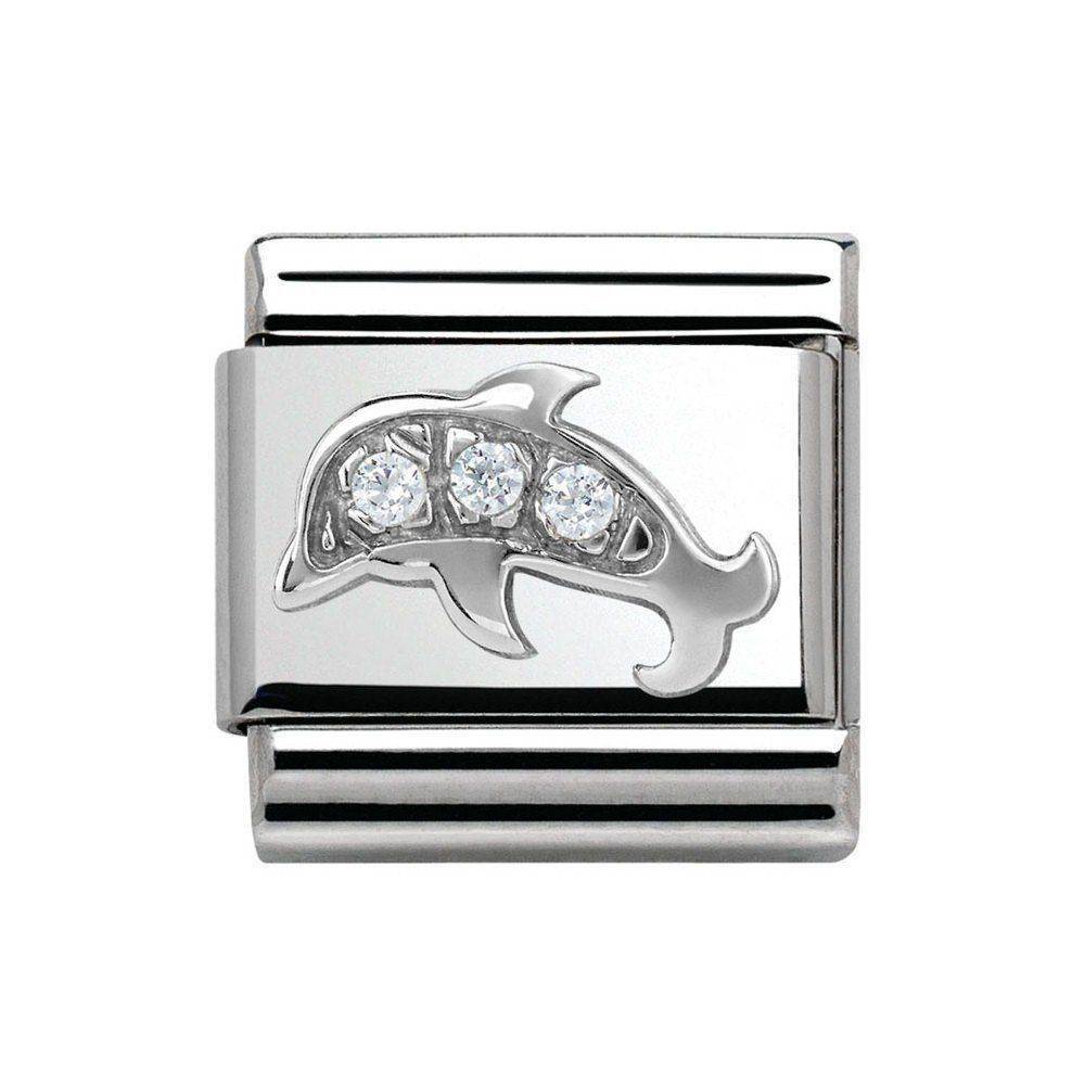 Original Charm for Nomination’s Composable Classic Bracelet with Dolphin symbol in stainless steel, sterling silver and white Cubic Zirconia. Add a touch of sparkle to your everyday look.