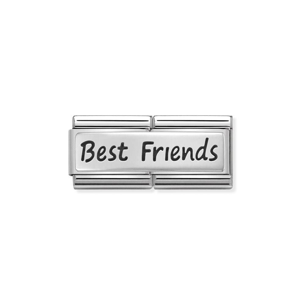 Nomination composable classic double charm engraved ‘Best Friends’. Crafted in stainless steel and silver.