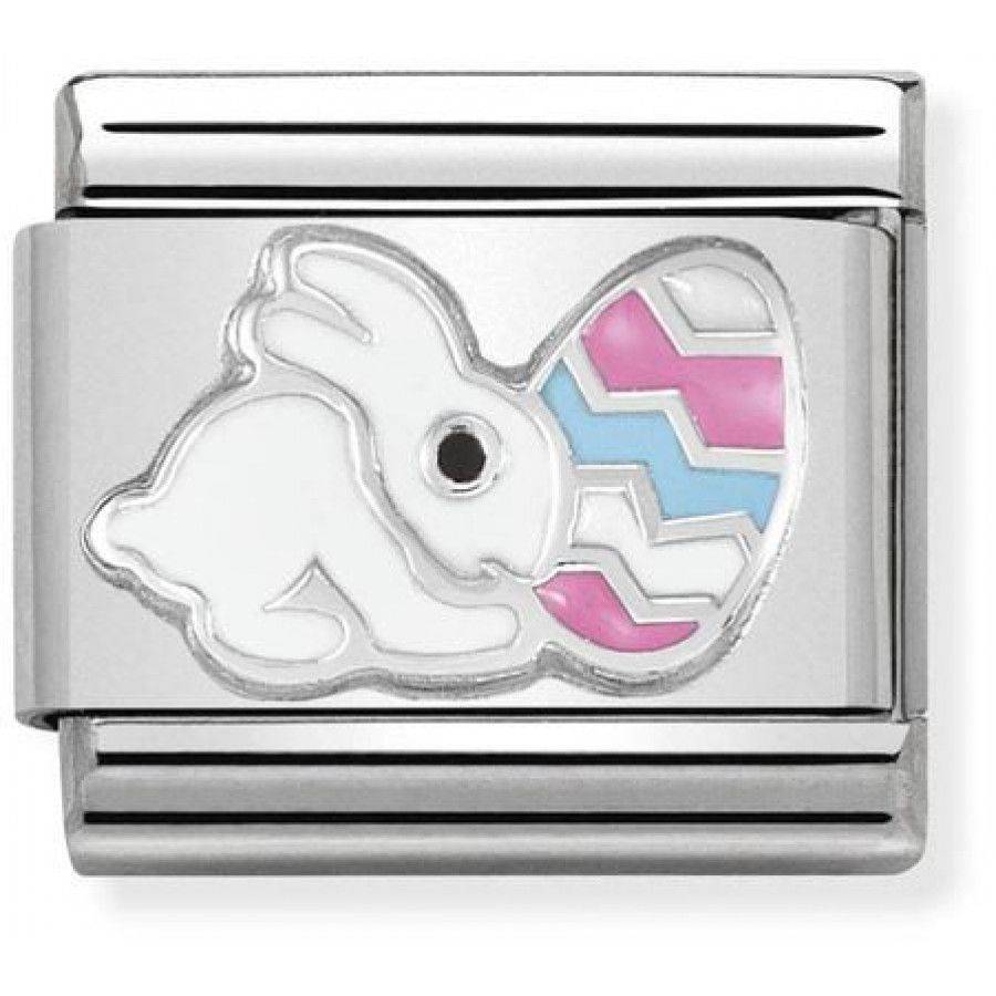 Nomination classic composable steel link with Easter Rabbit symbol in sterling silver and enamel. This charm is perfect to celebrate the Easter Bunny hopping into your life this Spring.