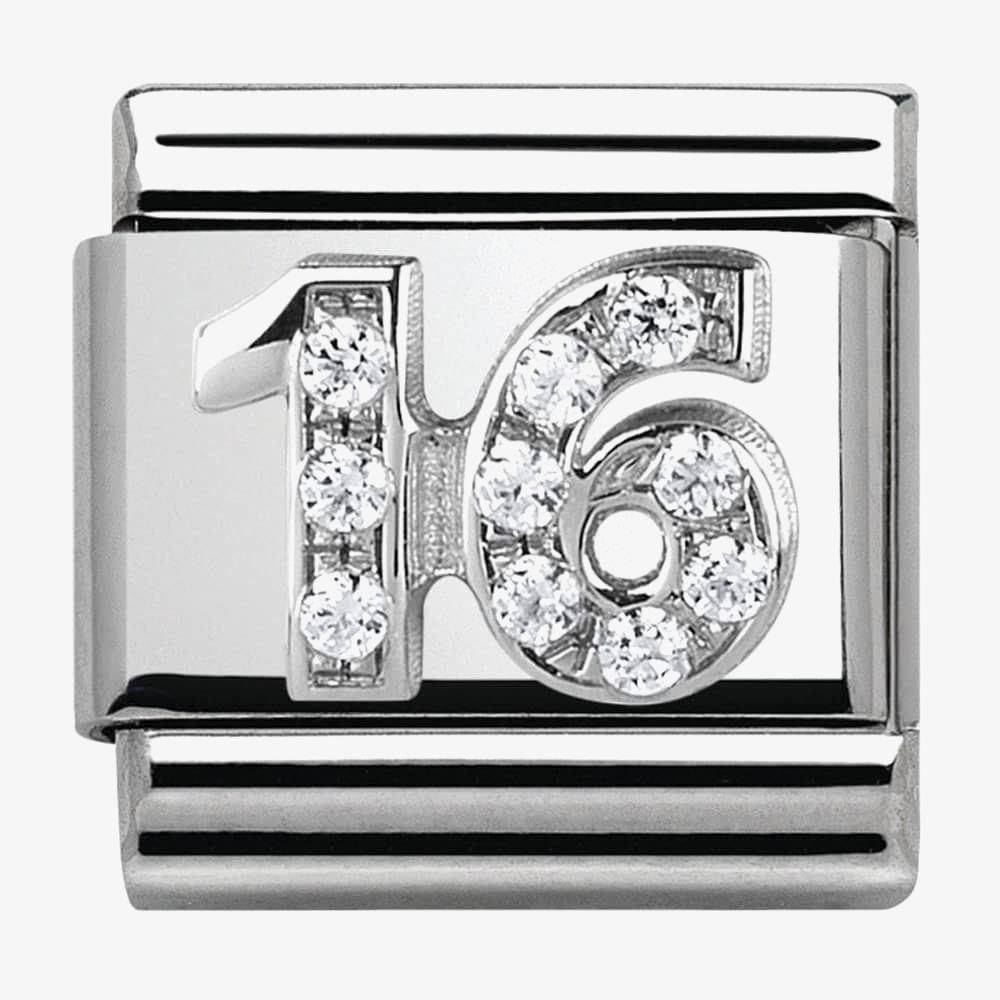 This gorgeous stainless steel charm is set with shimmering cubic zirconia and is perfect for marking that sweet 16th!