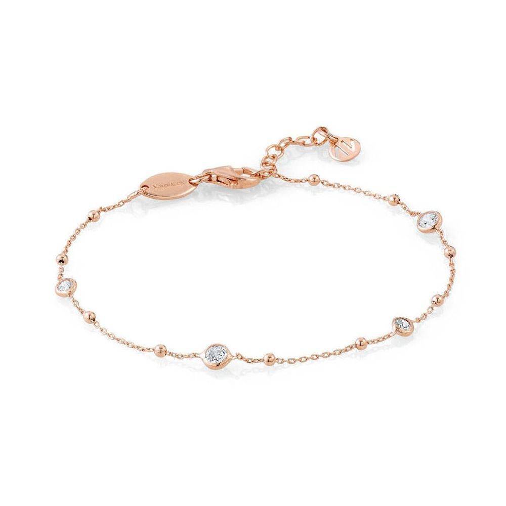 Nomination rose gold plated on silver fine Bella bracelet with sparkling cubic zirconia set all around the bracelet. This bracelet has an adjustable length to fit different wrist sizes.