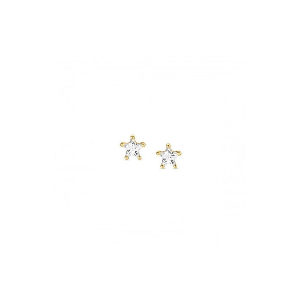 Sterling silver with 24K yellow gold plated finish stud earrings with White Cubic Zirconia Star. Pop on these earrings to shine all night long!