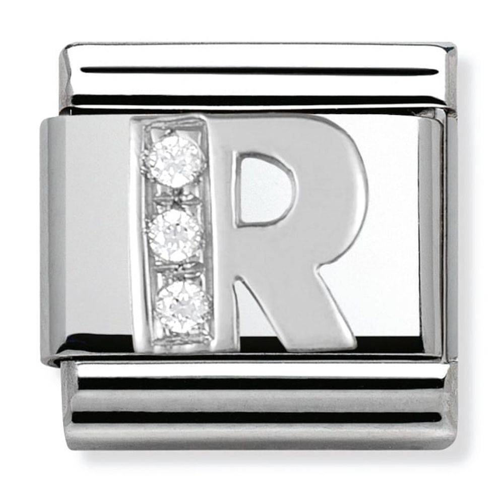 Nomination stainless steel and silver Silvershine initial R composable classic charm.