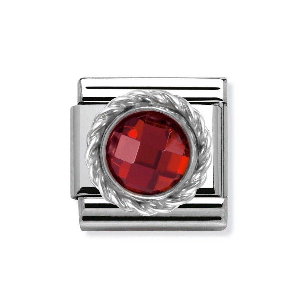 Nomination silvershine stainless steel and silver classic red faceted cubic zirconia charm.