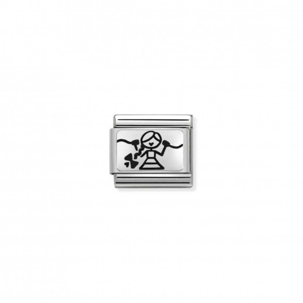 Nomination steel and silver Link with Girl with Braid. One of 3 Links to pair and share with your two best gal pals! #oneformeoneforyou
