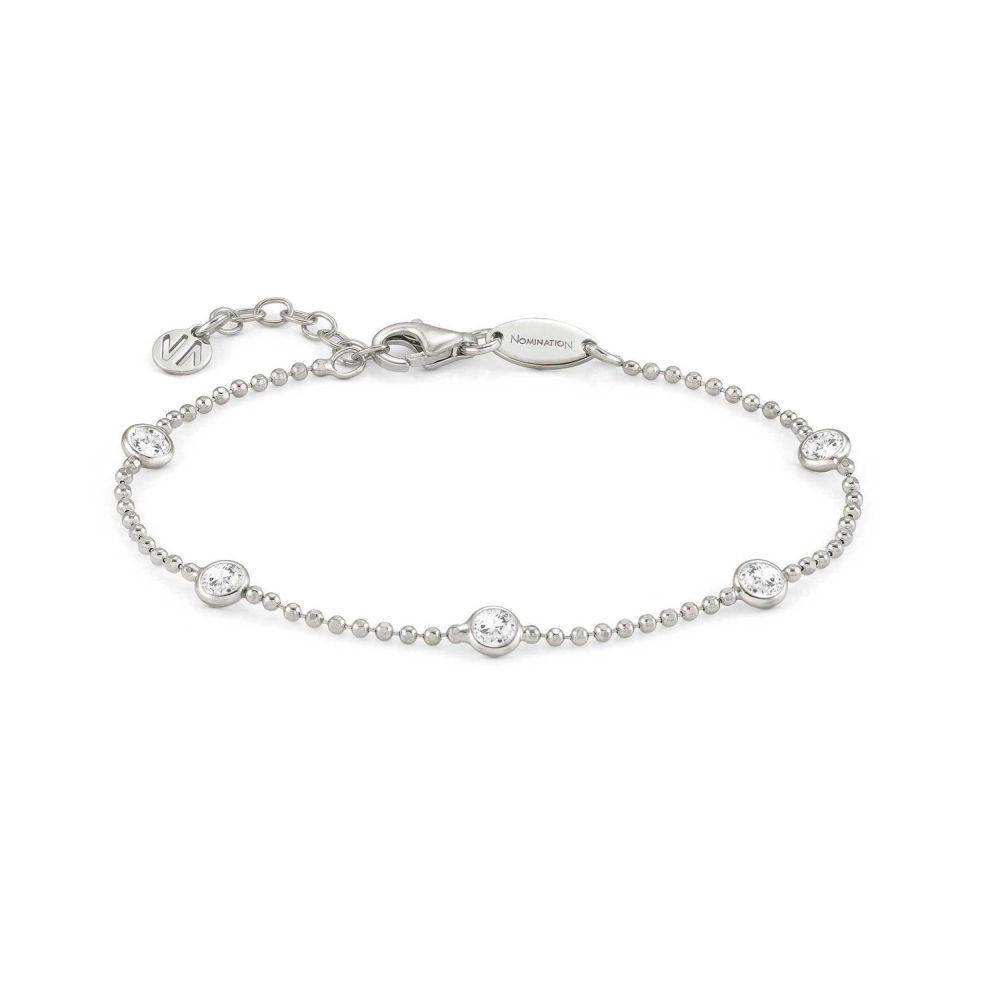 Nomination sterling silver beaded bracelet with spaced cubic zirconia.