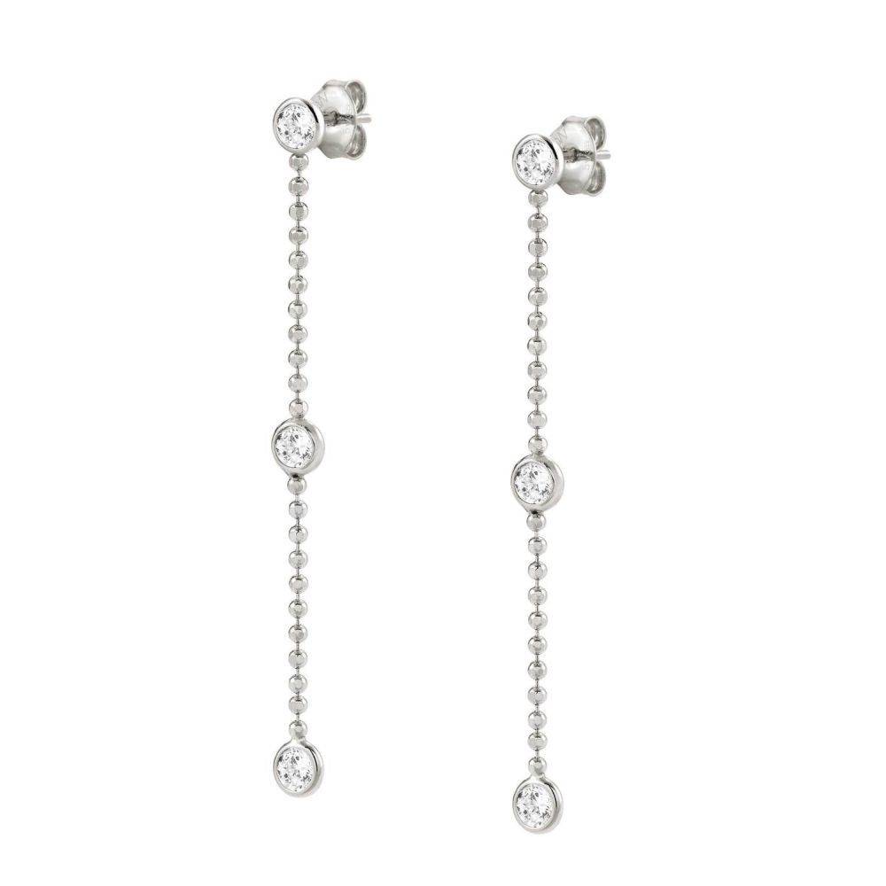 Nomination sterling silver Bella Bloom long drop earrings with equally spaced sparkling crystals.