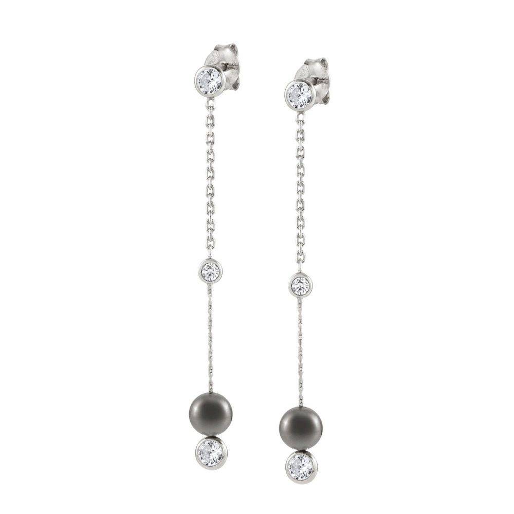 Nomination sterling silver Bella drop earrings with grey pearls and cubic zirconia.
