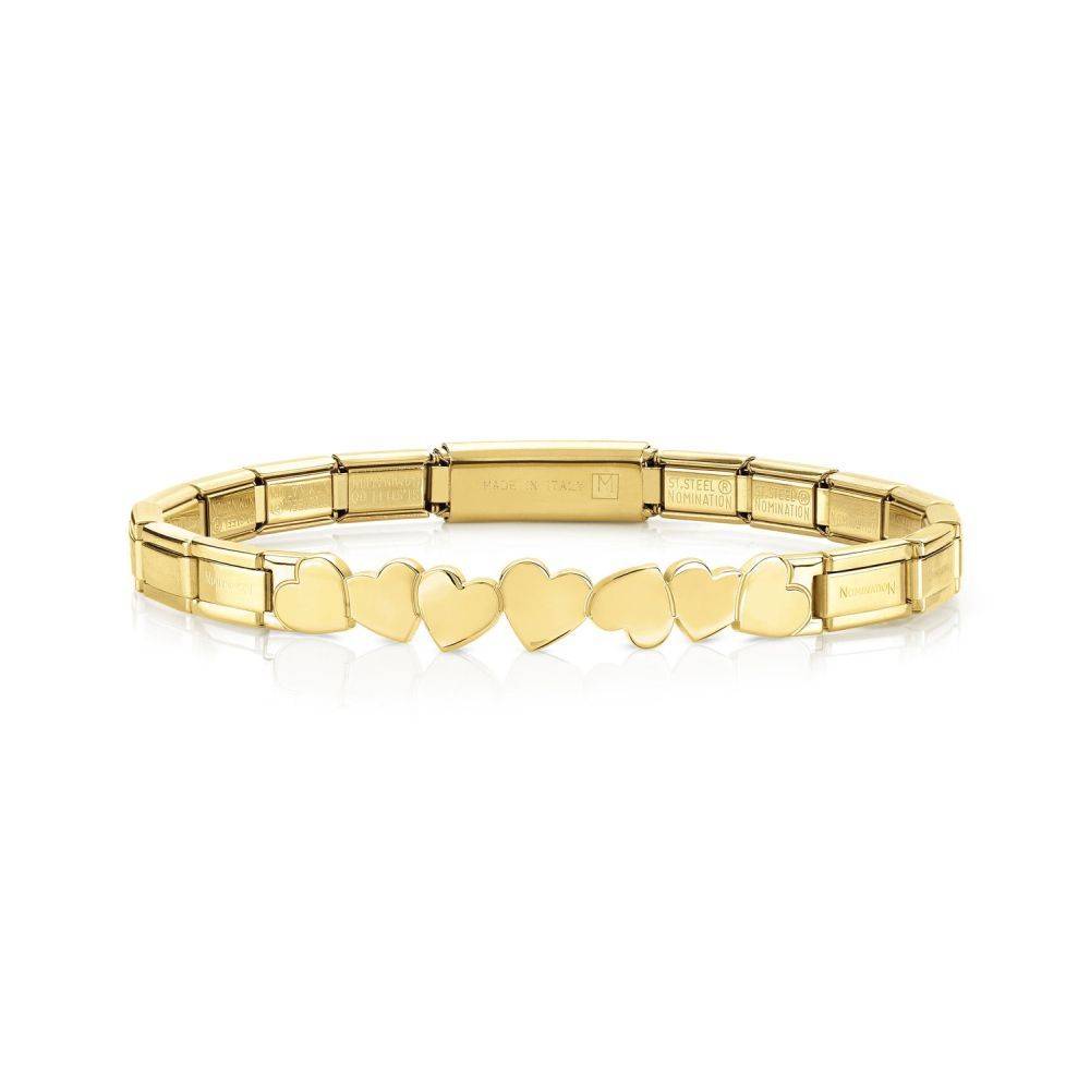 Nomination yellow gold plated on stainless steel bracelet with the adjustable Nomination links and a heart design in the centre.