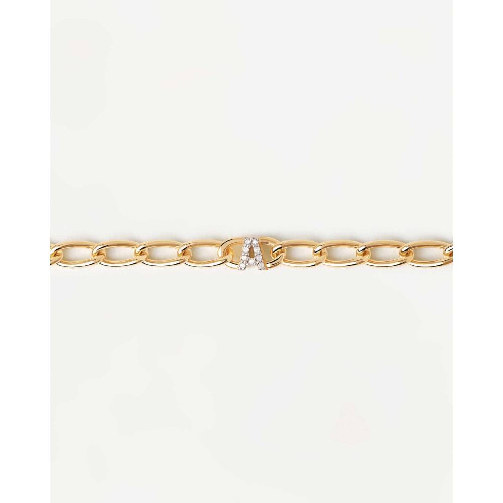 PDPAOLA sterling silver 18ct gold plated initial A bracelet set with sparkling cubic zirconia. The Letter bracelets feature a shimmering letter that blends in elegantly with the chain. The epitome of sophistication and charm. Pair with the letter mini necklace to complete your look. Length 19cm.
