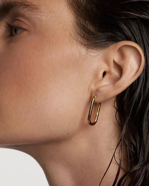 PDPAOLA 18ct yellow gold plated on sterling silver Beat hoop earrings, a modern oval design with hinged fittings. Length 2.7cm.