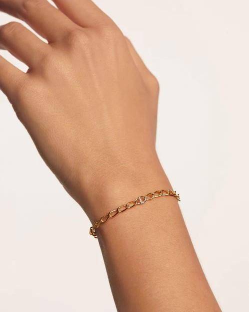 PDPAOLA gold initial L bracelet. The Letter bracelets feature a shimmering letter that blends in elegantly with the chain. The epitome of sophistication and charm. This bracelet is made in sterling silver with a 18ct gold plating.