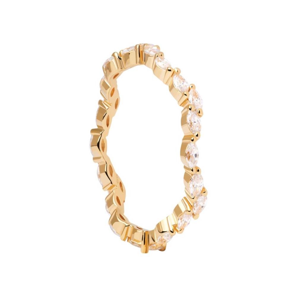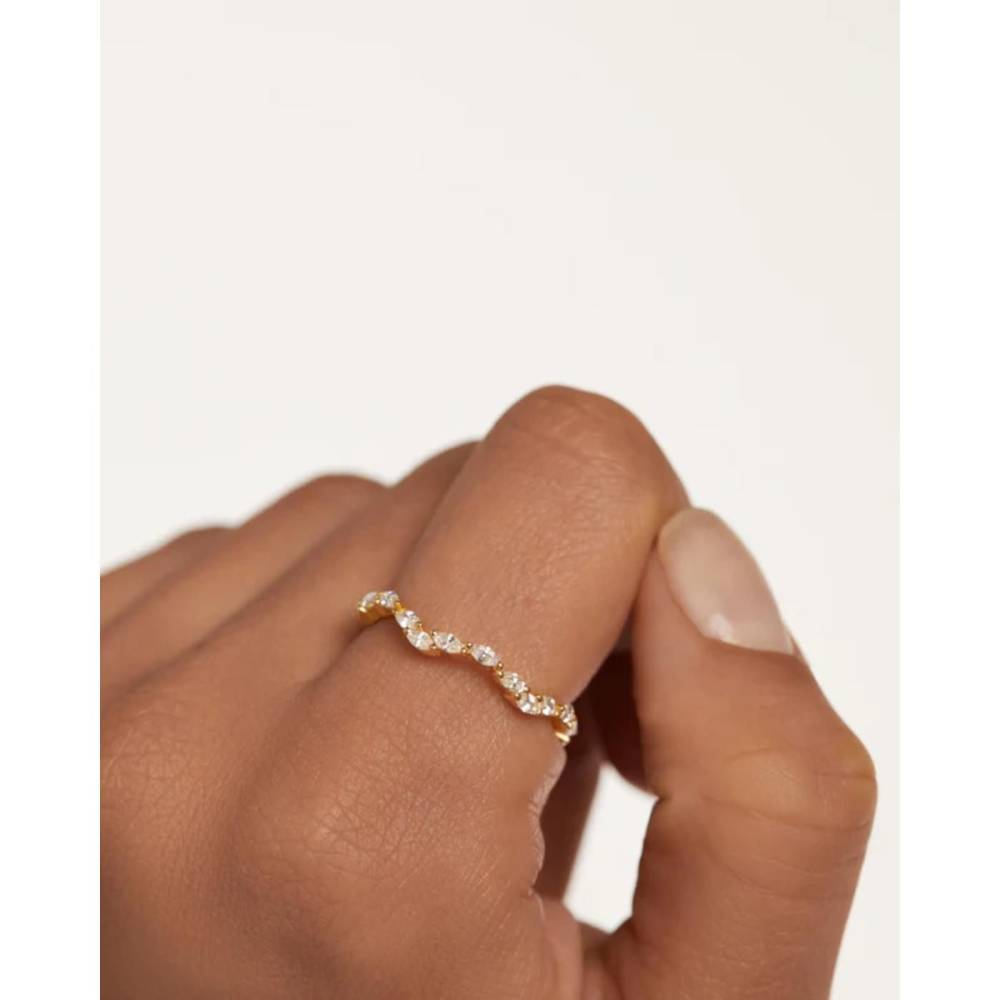 PDPAOLA narrow gold wavy band set with marquise shaped cubic zirconia. Size 16, equivilant to UK size O-P.