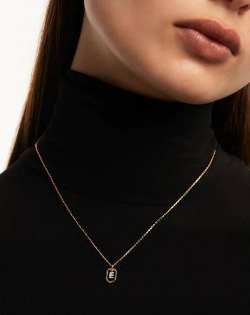 PDPAOLA gold initial E pendant set with sparkling cubic zirconia. Crafted in sterling silver with 18ct gold plating. Chain length is adjustable 40-50cm.