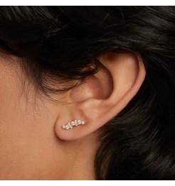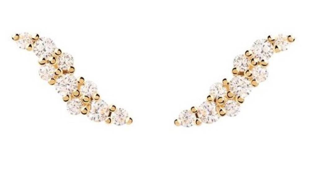 PDPAOLA 18ct yellow gold plated Natura climber stud earrings set with a wave of cubic zirconia. Earrring length 1.2cm.