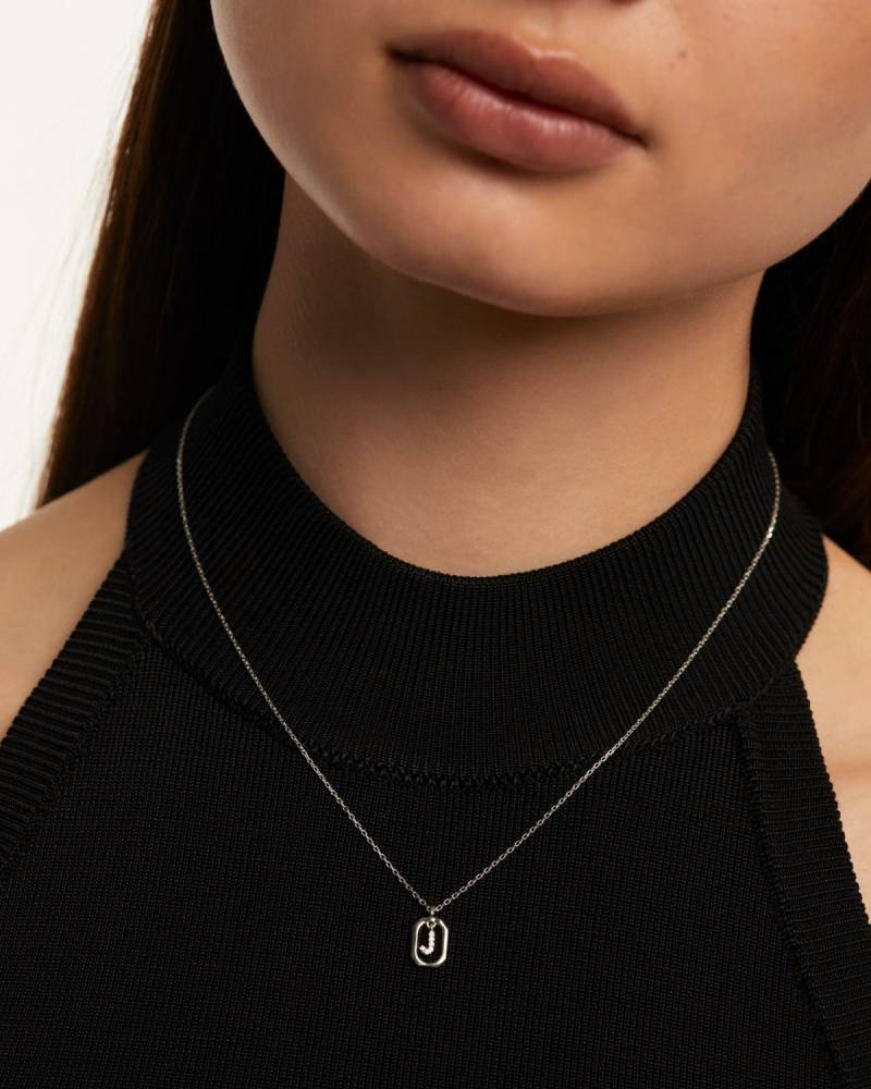 PDPAOLA sterling silver Initial J pendant set with sparkling cubic zirconia on a 40-50cm adjustable silver chain.