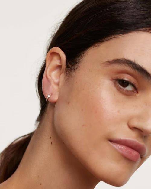 PDPAOLA small half hoop style earrings each set with a single cubic zirconia. Diameter 10mm.