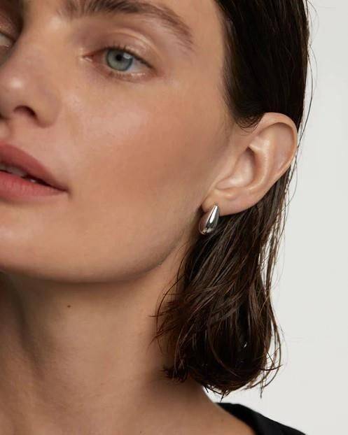 PDPAOLA sterling silver teardrop shaped stud earrings finished with a rhodium plating to prevent tarnishing. The Essentials embody refined effortlessness. Timeless pieces with smooth lines, unpretentious staple pieces that are perfect for everyday wear but can also work on special occasions. Dimensions 15 x 8mm.