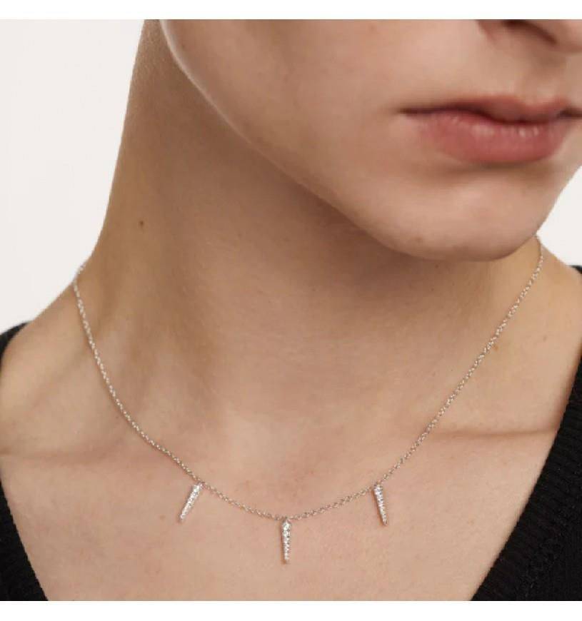 PDPAOLA sterling silver peak necklace with three peak cubic zirconia drops. Adjustable 40-50cm length. Perfect worn alone or layered with other necklaces.