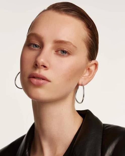PDPAOLA Sterling silver large wavy hoop earrings. Size 45mm x 35mm.