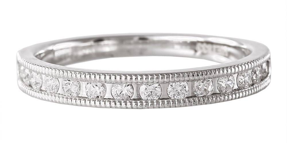 Platinum ladies round brilliant cut diamond channel set ring with a millegrain edge. This ring can be worn as a wedding or eternity ring. Total diamond weight 0.25ct