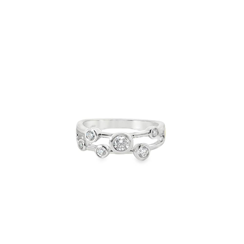 Platinum scatter ring rub over set with 6 round brilliant cut diamonds. Total diamond weight 0.42ct.
