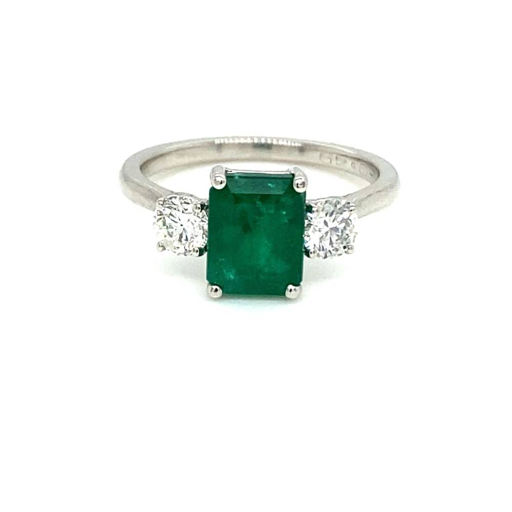 8. Platinum Emerald & Diamond Three Stone Ring