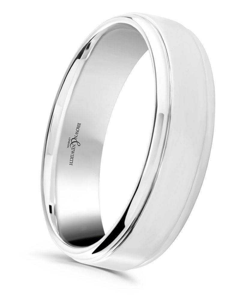 Platinum gents polished lined edge wedding ring. 5mm wide. This ring is available in different widths and precious metals.