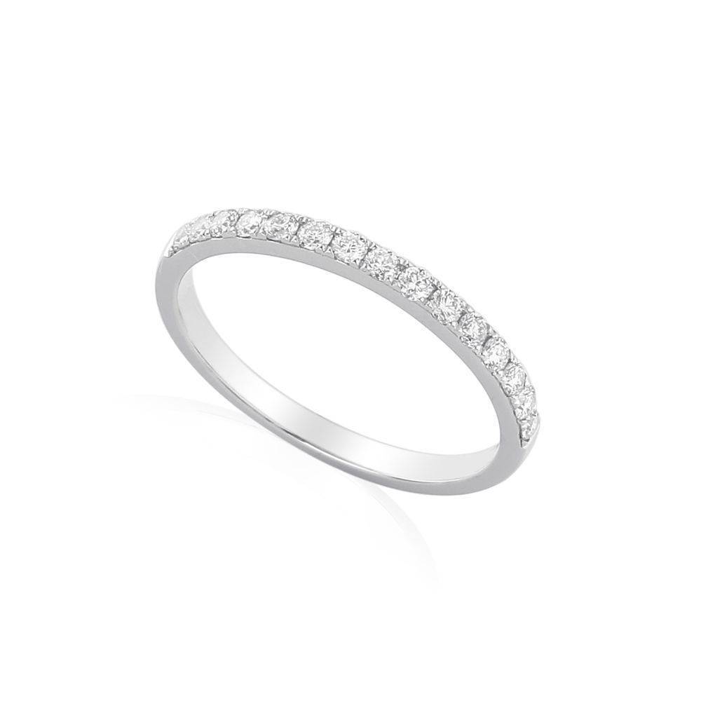 Platinum round brilliant cut diamond grain set half eternity style ring. This ring has a total diamond weight of 0.27ct and the diamonds are H colour. Si2 clarity.