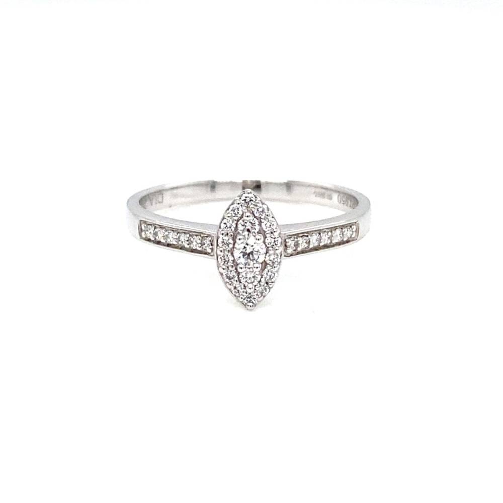 Platinum marquise shaped cluster ring made up of round brilliant cut diamonds with diamonds set in the shoulders. 0.20ct total diamond weight.