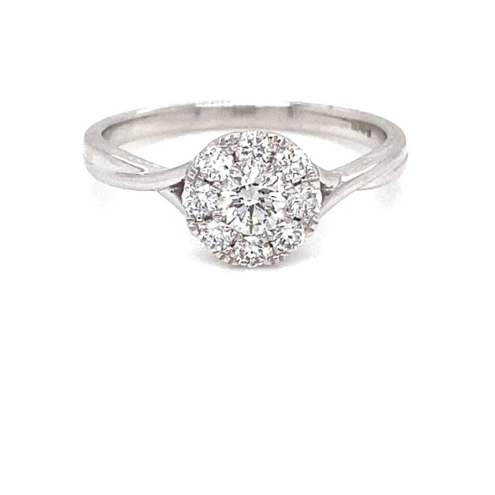 Platinum round round brilliant cut diamond cluster style ring with slight twisted shoulders. 0.50ct total diamond weight.