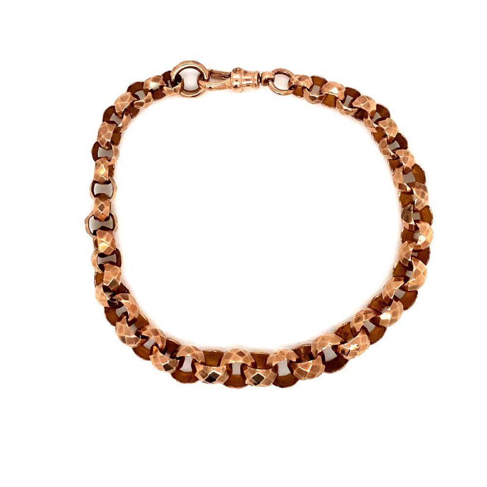 Pre Owned 9ct rose gold diamond cut graduated belcher link bracelet. Weight 8.6g. Length 19cm.