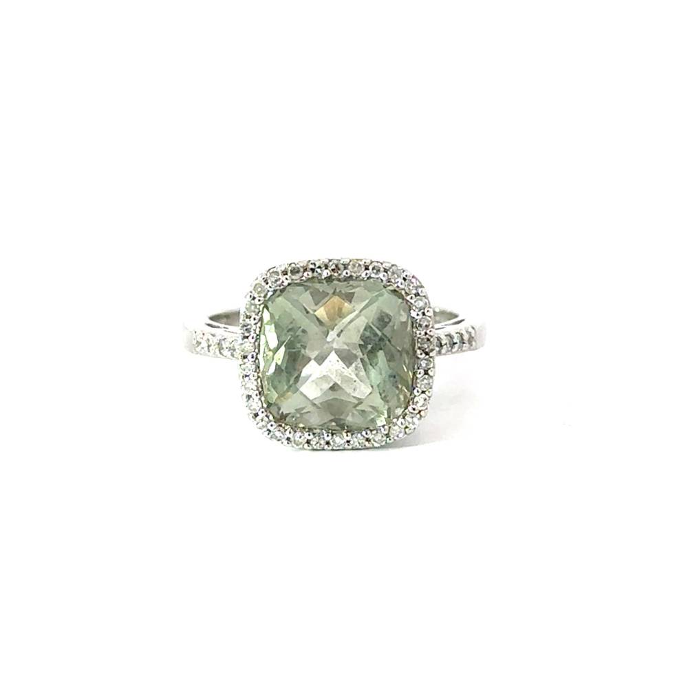 8. Pre Owned 9ct White Gold Green Amethyst & Diamond Ring