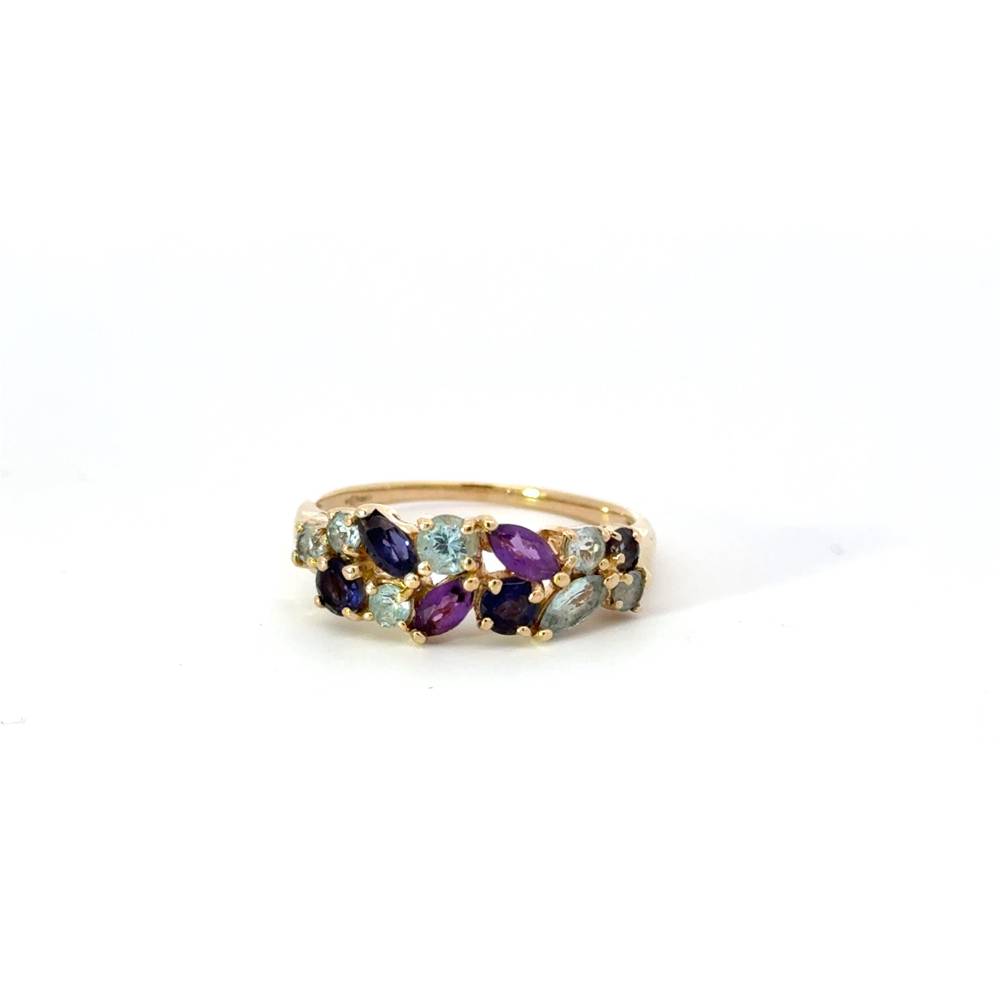 8. Pre Owned 9ct Yellow Gold Amethyst Blue Topaz and Iolite Ring